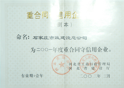 2001年重合同守信譽(yù)單位2